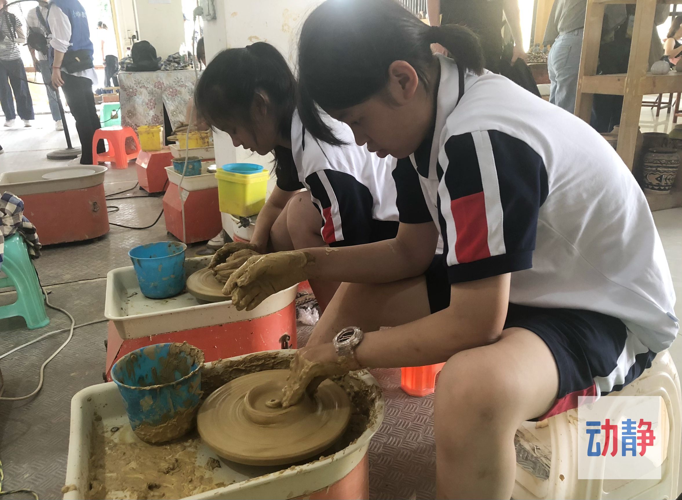 正值暑假,每天来花茂村研学的学生团队很多,离红色之家不到200米的“母氏陶艺馆”,一群学生正在体验制陶的乐趣,这已是今天接待的第四批学生了。