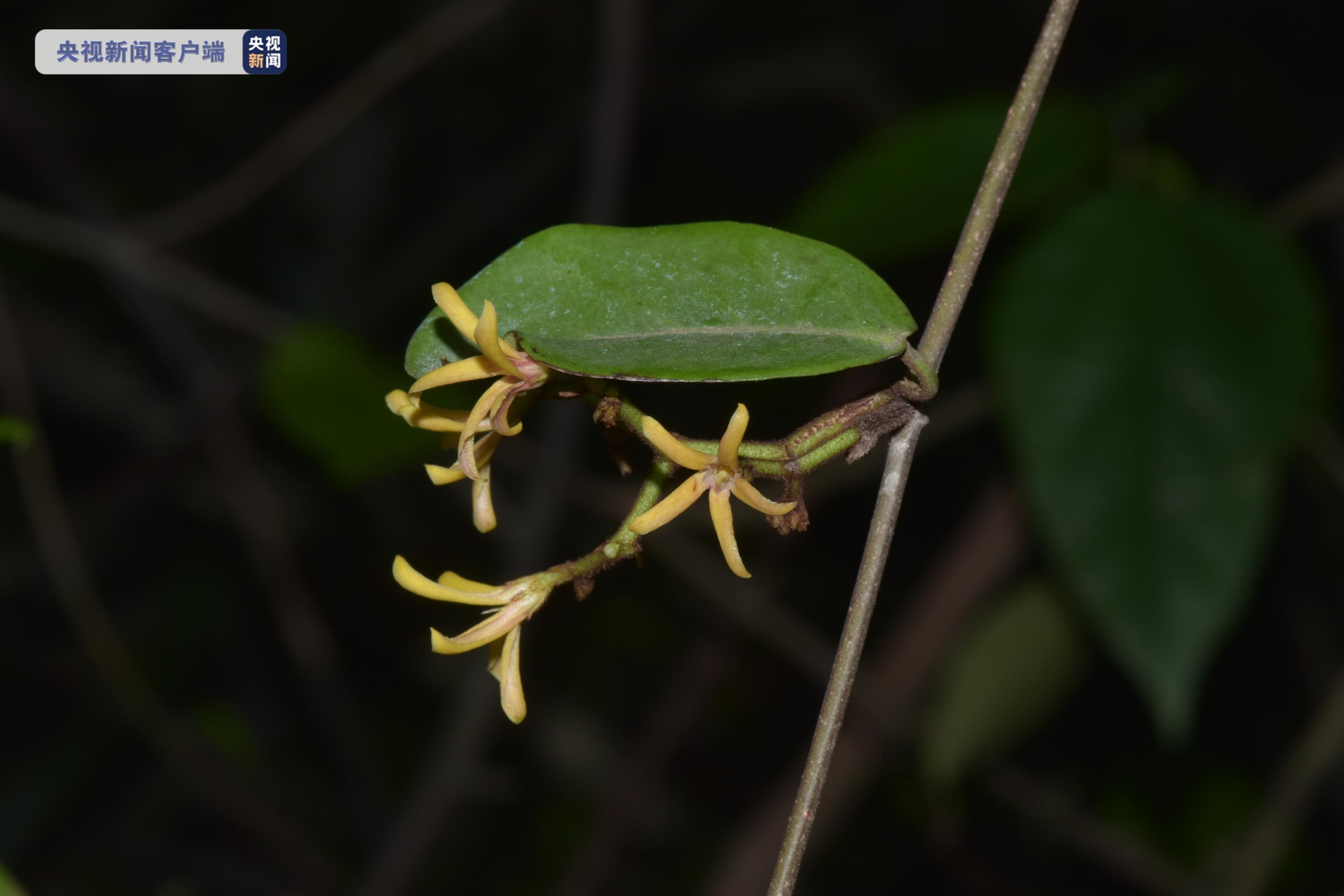 毛弓果藤为夹竹桃科弓果藤属多年生藤状灌木,生长于保护区内的林缘灌丛。此次发现的植株长约5米,幼嫩部分被锈色绒毛覆盖。该物种一般4月开花,6月结果,花团呈聚伞状,即中间的花最先开放,再渐及两侧。