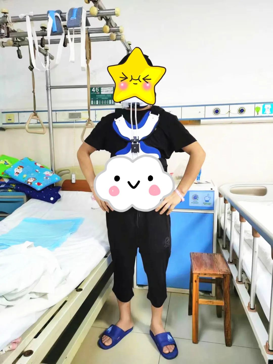 术后,医务人员为患者制定个性化早期呼吸训练、排尿障碍训练、压力性损伤预防、深静脉血栓预防、加强双上肢残余肌力训练、被动双下肢肢体训练、高压氧疗等康复计划,促进患者脊髓功能恢复。同时给予患者针对性的心理疏导,为其树立战胜疾病的信心。