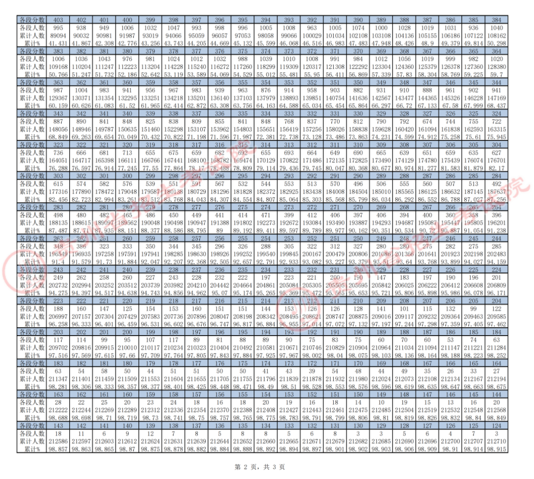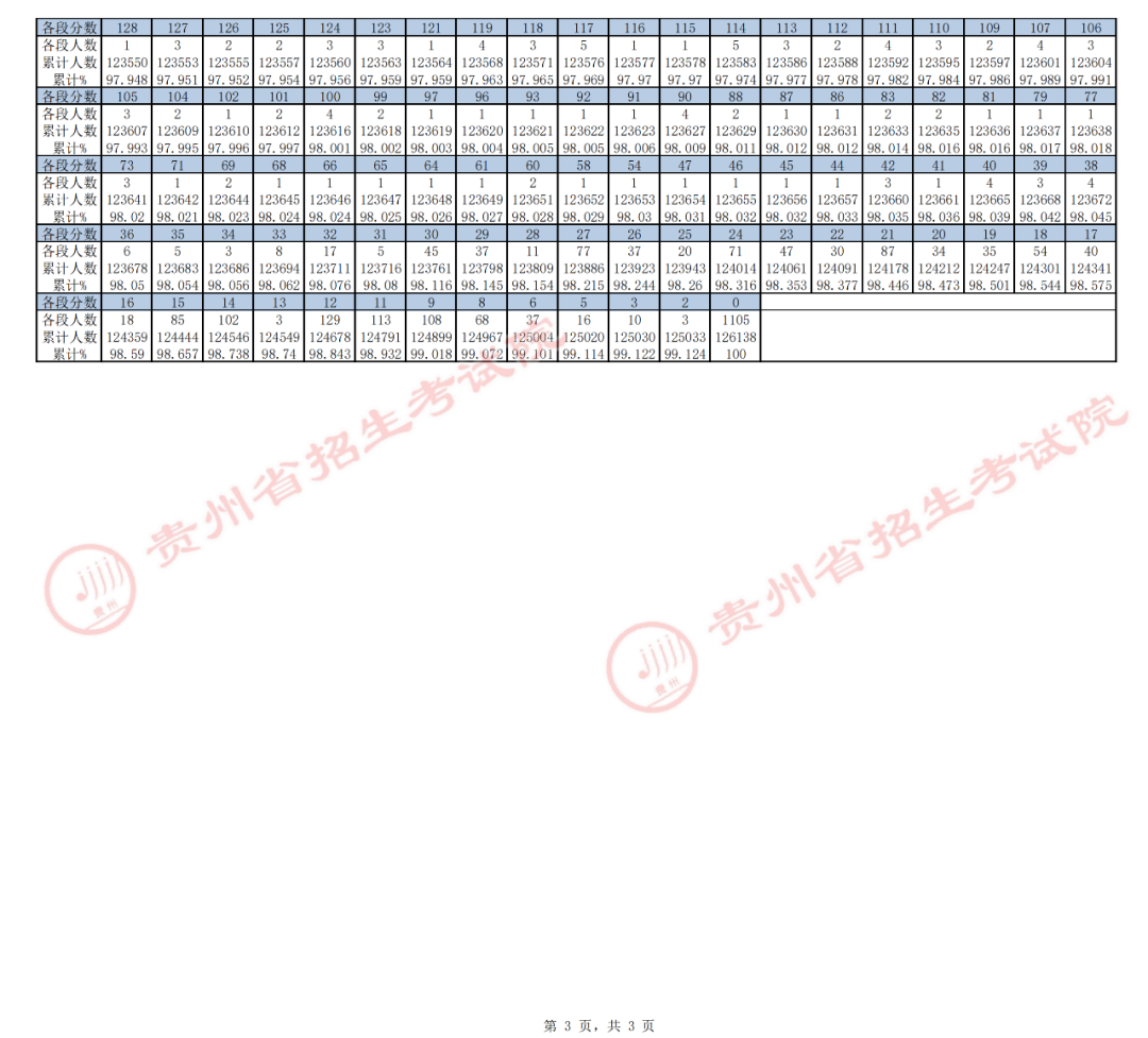 贵州省2022年高考体育综合分、艺术类统考文化上线专业考试分数段统计表已公布