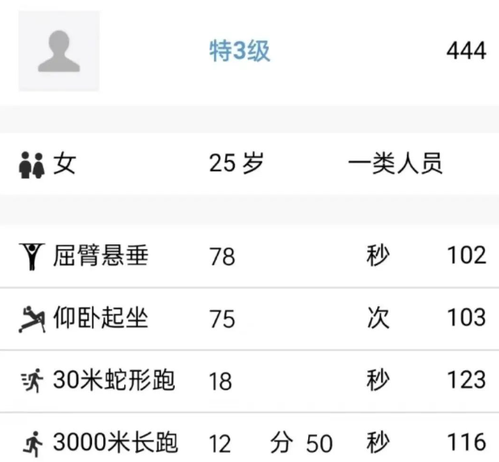 部队军事体育成绩评定标准分为7级