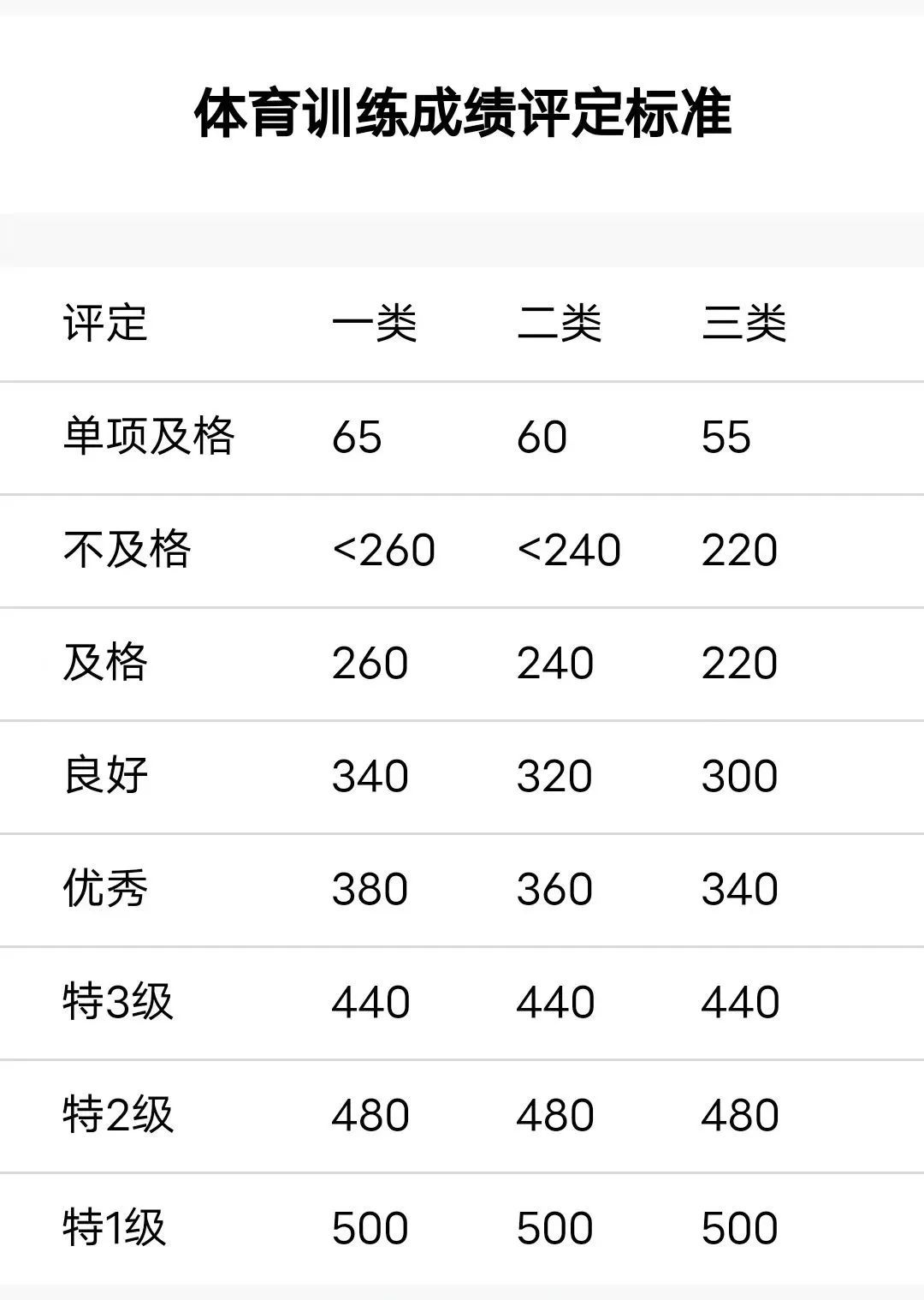体育训练成绩评定标准
