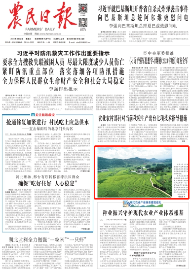 今天(8月2日),《农民日报》刊发图片新闻,介绍了贵州省黔东南苗族侗族自治州岑巩县近年来将杂交水稻制种产业作为“一县一业”的主导产业来抓,常年种植面积近4万亩,每年可提供优质水稻良种800余万公斤。