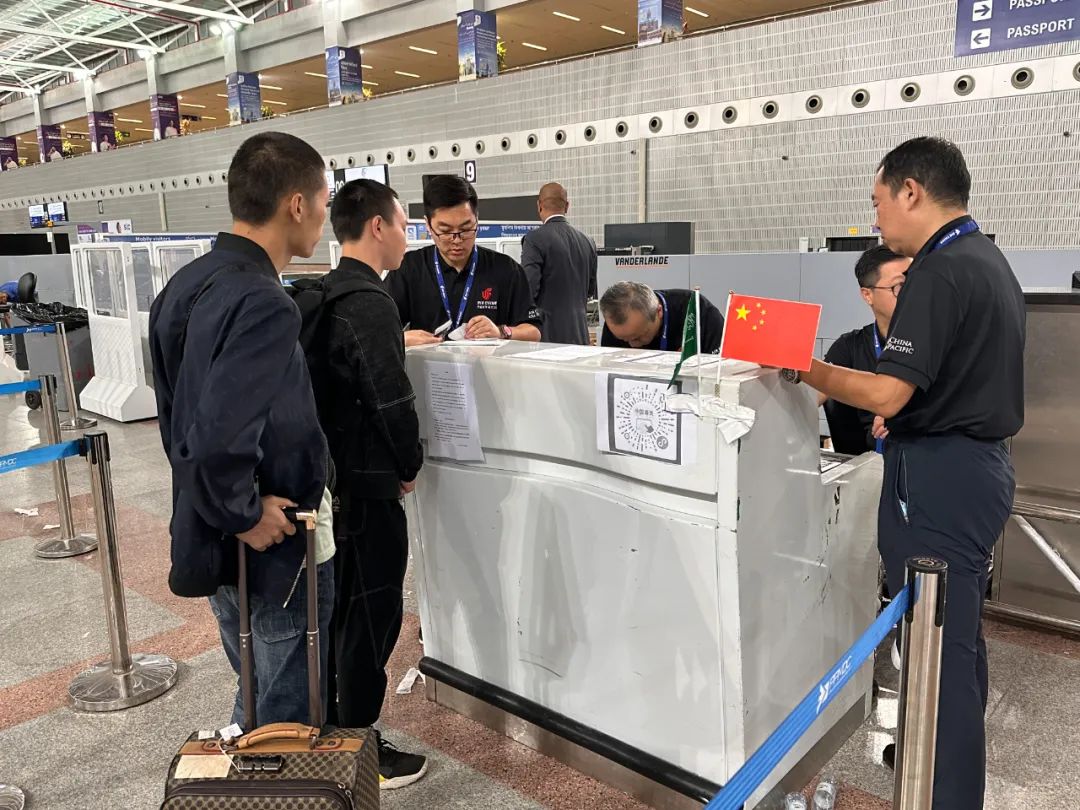 当地时间5月2日早上,中国从苏丹撤离的部分人员从沙特西部吉达阿卜杜勒阿齐兹国王国际机场乘坐中国国际航空临时航班启程回国,这一航班也是苏丹局势突变以来搭载撤离人员从沙特起飞回国的第二架临时航班。中国驻沙特大使馆和吉达总领馆工作人员现场组织办理相关手续并送行。