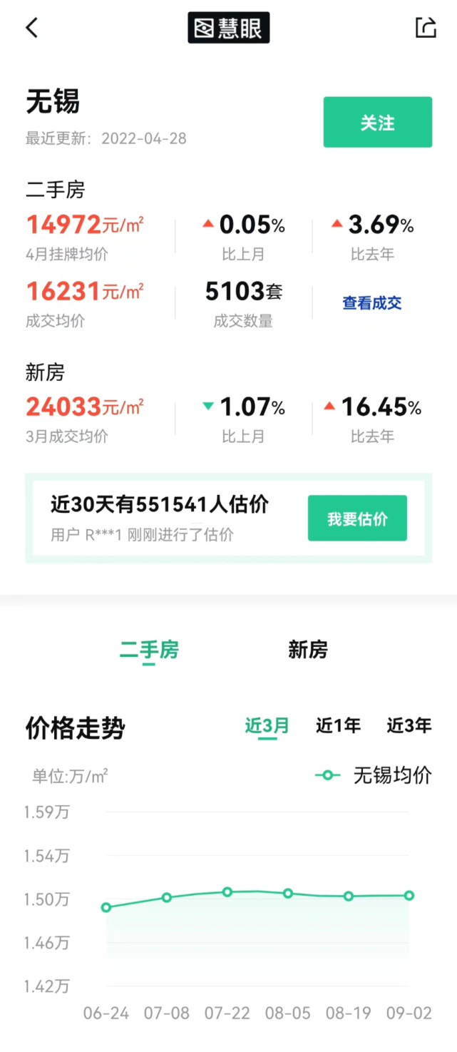 安居客数据显示,4月无锡二手房挂牌均价为14972元/平方米,与上月相比上涨0.05%。