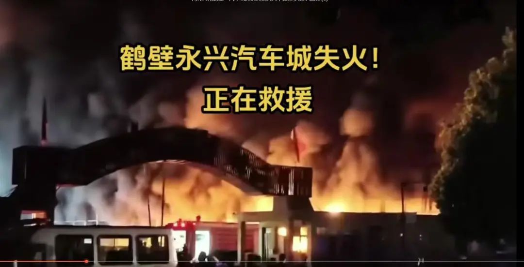 多位网友发布视频称,6月11日深夜,鹤壁市淇滨区黎阳路的永兴汽车城发生火灾,汽车城内多家4S店被波及。火灾发生时,汽车城内停放了大量汽车。视频显示,永兴汽车城内,一栋建筑正燃起大火,冒出滚滚浓烟,多辆消防车赶到现场处置。