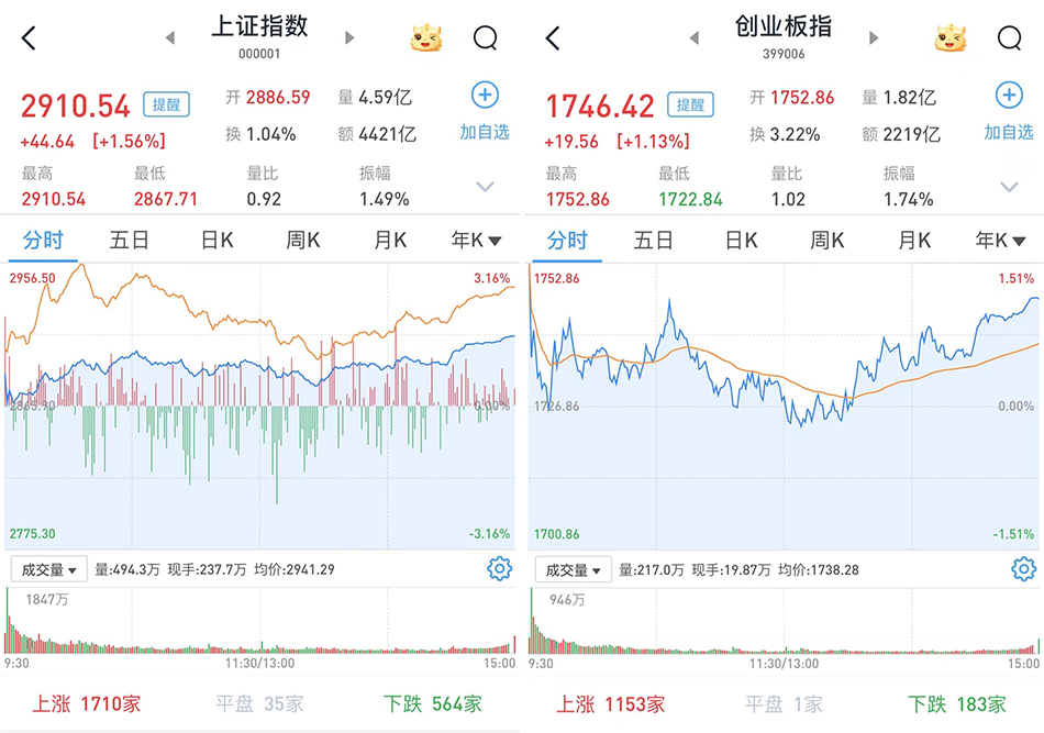 2月19日,龙年首个交易日,A股三大股指集体高开。早盘指数分化,沪指盘中一度收复2900点关口,深成指和创指冲高回落。午后银行股持续走高,带动两市温和回暖,沪指尾盘更是再度收复2900点关口。