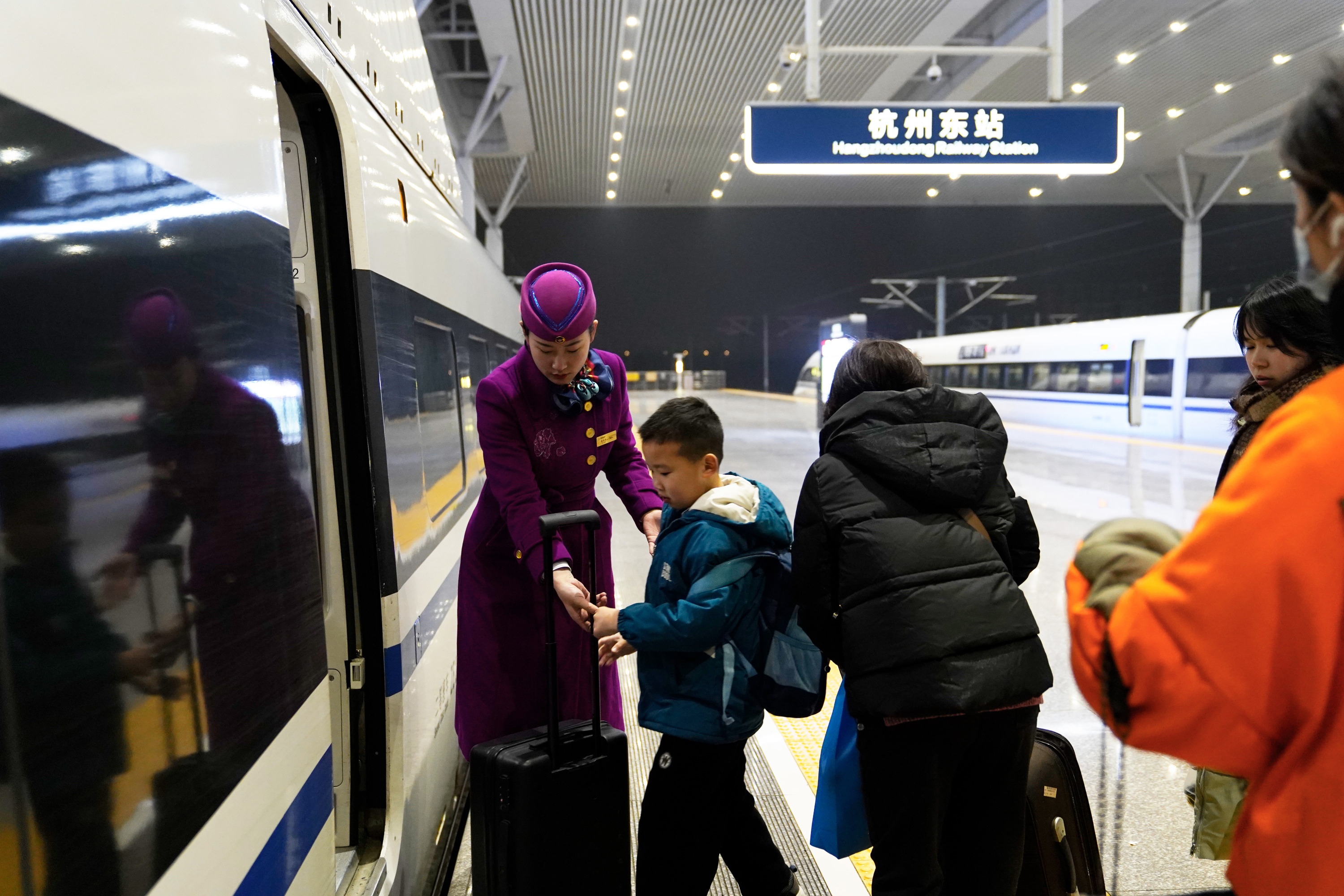 2月4日凌晨2时整,由中国铁路成都局集团公司贵阳客运段担当值乘的G4923次“红眼高铁”载着1078名返乡旅客从杭州东站驶出,列车重联运行,途经浙江、江西、湖南,历时7小时后抵达贵阳北站。这趟“红眼高铁”是为了满足旅客出行需求而临时增加的动车组列车。春节前,贵阳客运段在客流较集中的上海、南京、杭州、深圳、重庆等方向共增开了20列“红眼高铁”。