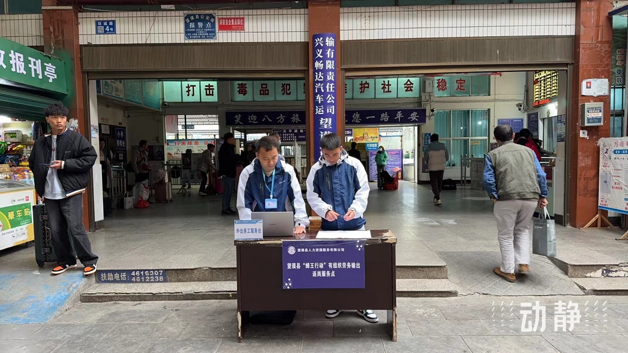 春节后是返岗高峰期,县里人力资源公司特意在车站设立服务点,负责接送返岗群众。