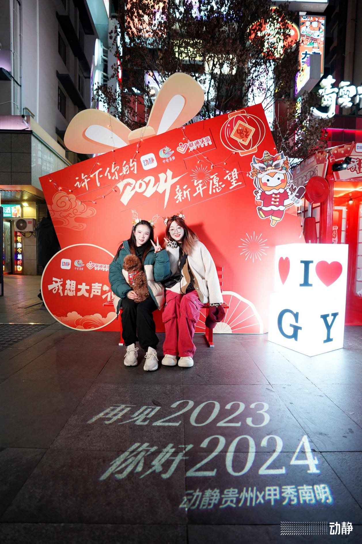 为了让大家与2023年好好告别,迎接崭新的2024年,12月24日晚7点,贵州广播电视台动静、贵阳市南明区融媒体中心爽爽贵阳、甲秀南明,联通沃派联合发起的“再见2023,你好2024丨我想大声说”的活动在贵阳市南明区青云市集开启,不少市民朋友都前来为他们的2023年留下最美瞬间,并送上2024年的心愿祝福。