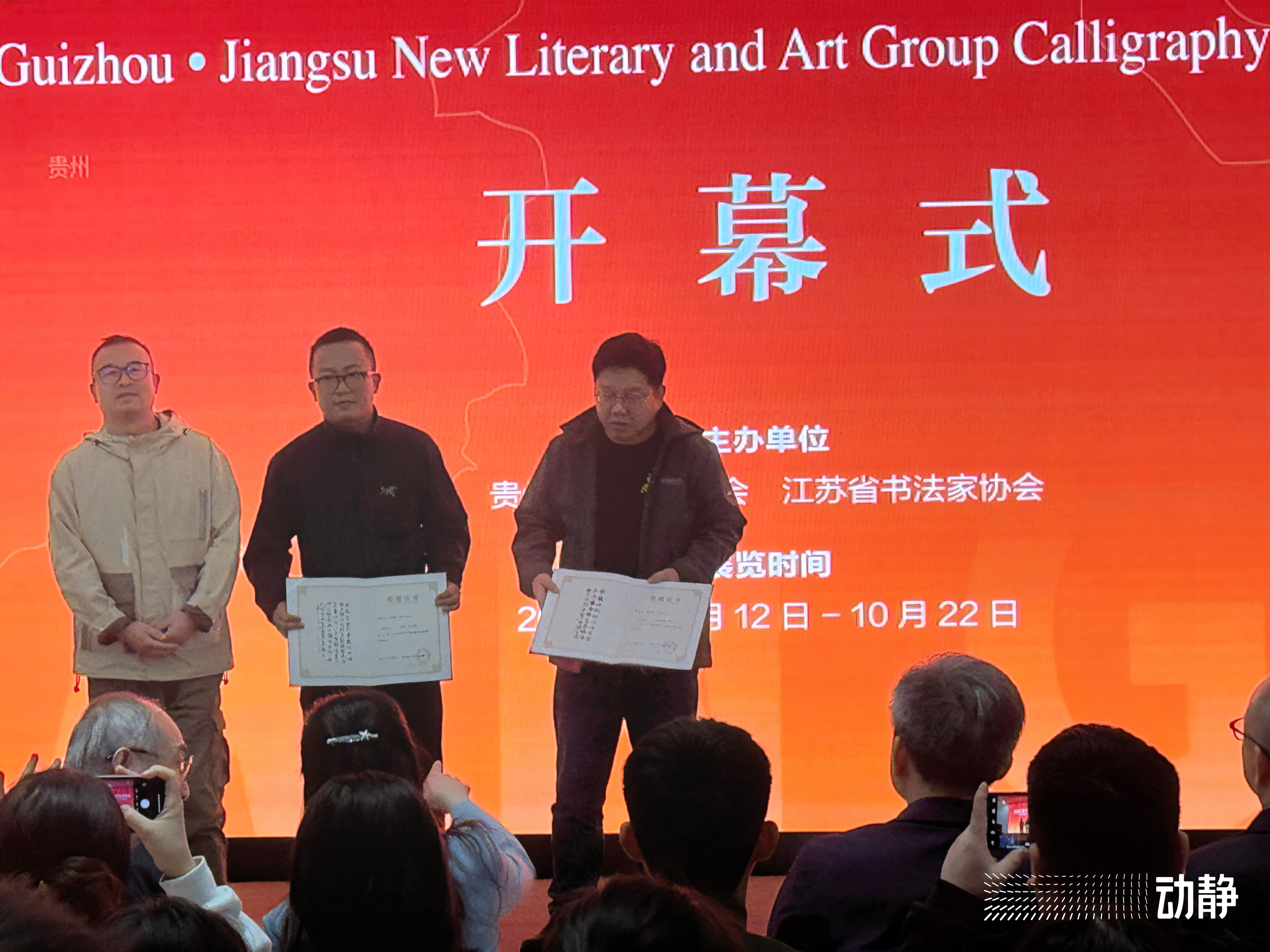 江苏作者贾安明、贵州作者王饶杰还将本次展览展出作品捐赠给贵州省美术馆。在当天下午的开幕式上,贵州美术馆典藏展陈部副主任傅斌为他们颁发了收藏证书。