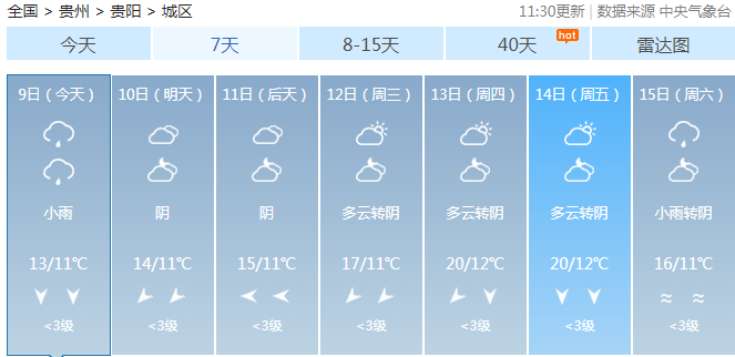 周三至周四(12日~13日),省的西北部地区阴天有零星小雨,其余地区多云间阴天;