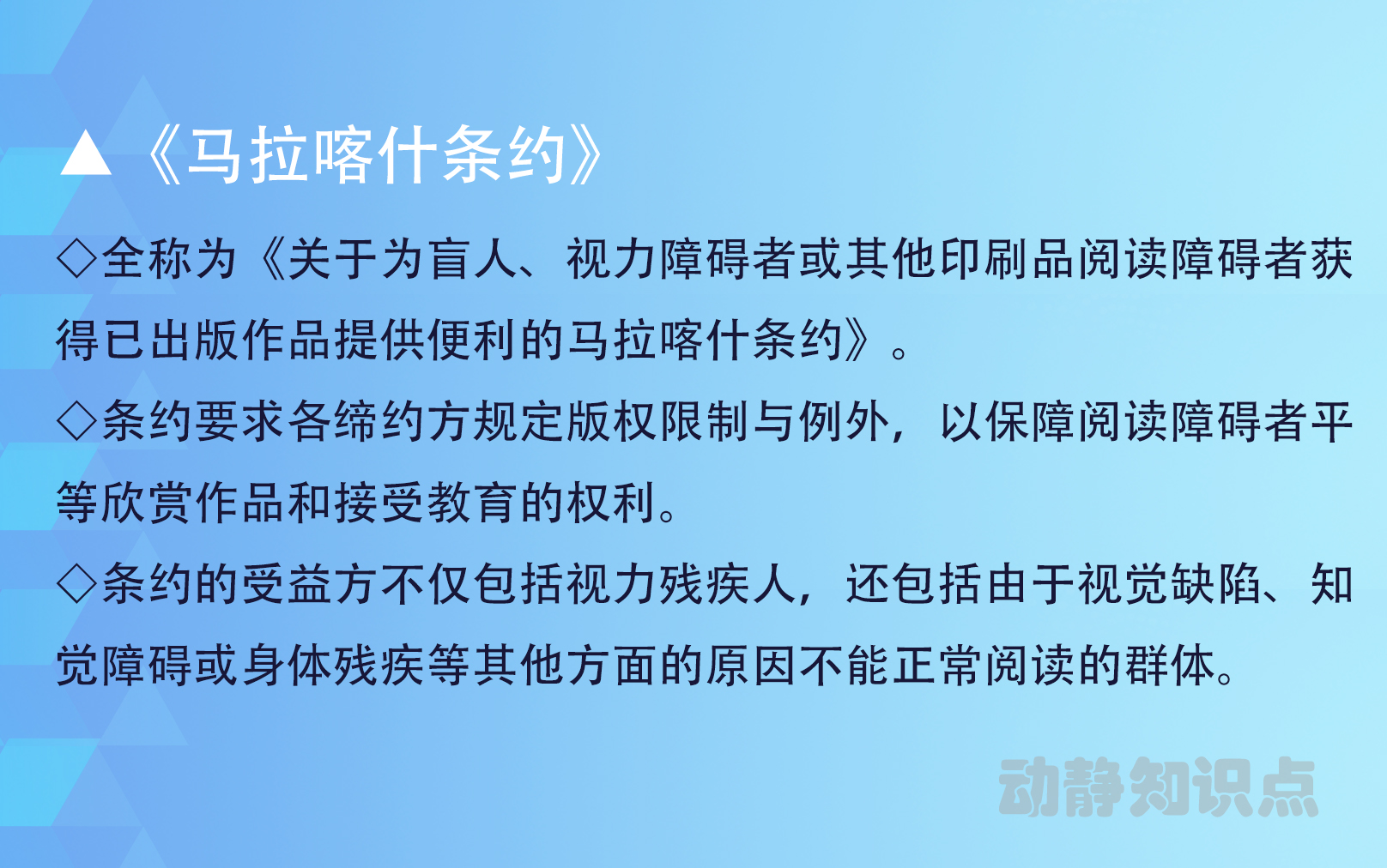 ▲世界上迄今为止唯一的一部版权领域的人权条约《马拉喀什条约》将于2022年5月5日对中国生效。