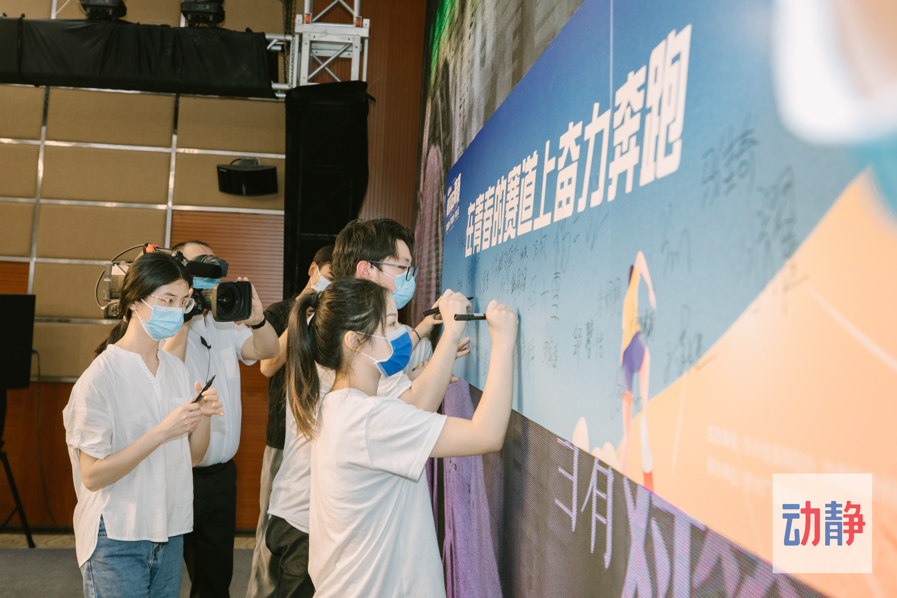 团课现场,来自贵州各大高校的45名大学生在现场与嘉宾们进行了互动,一起朗诵了诗歌《我是中国青年》,并集体在象征“青春赛道”的标语上签下了自己的名字。