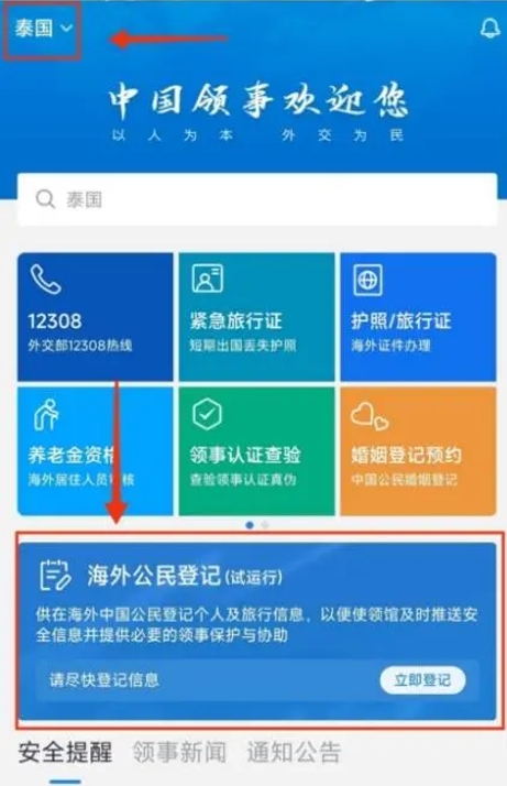 据中国驻泰国大使馆微信公众号消息,为进一步帮助海外中国公民更好获得领事保护与服务,外交部“中国领事”APP已推出“海外公民登记”功能模块。目前已有不少在泰中国公民积极响应,完成登记手续。
