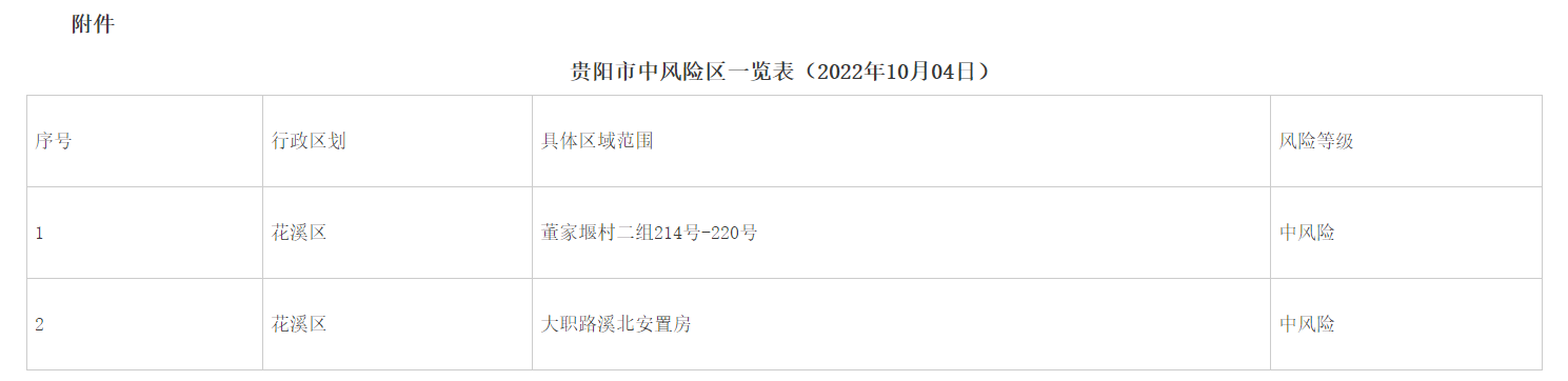 附件:贵阳市中风险区一览表(2022年10月04日)