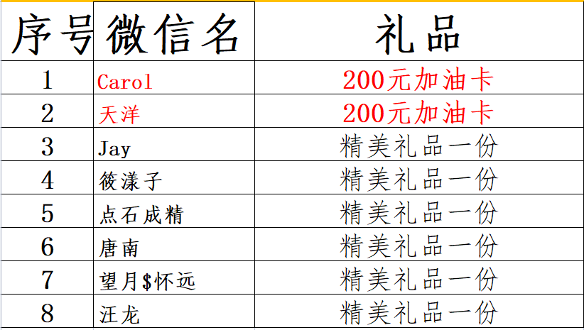 参加活动的中奖名单