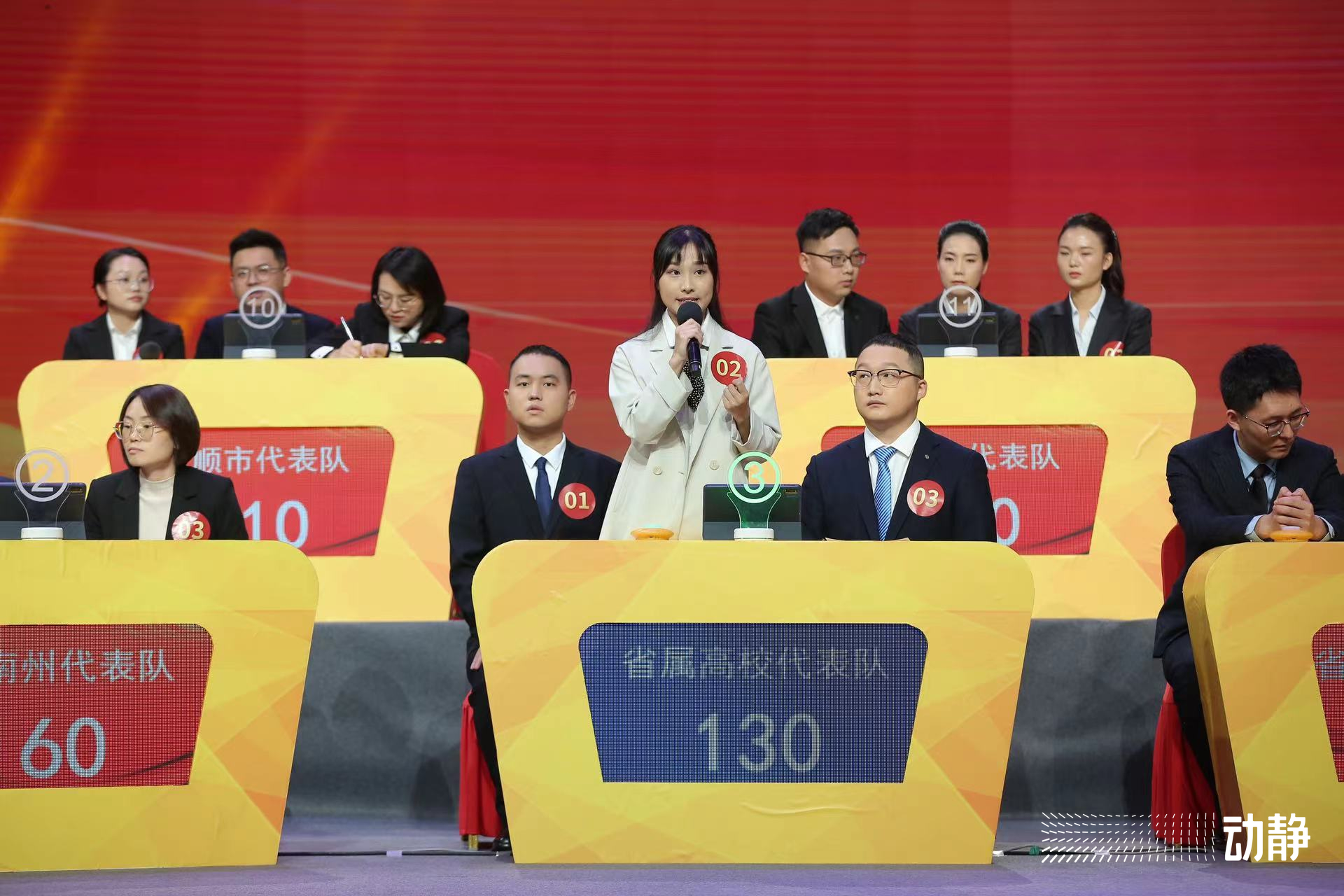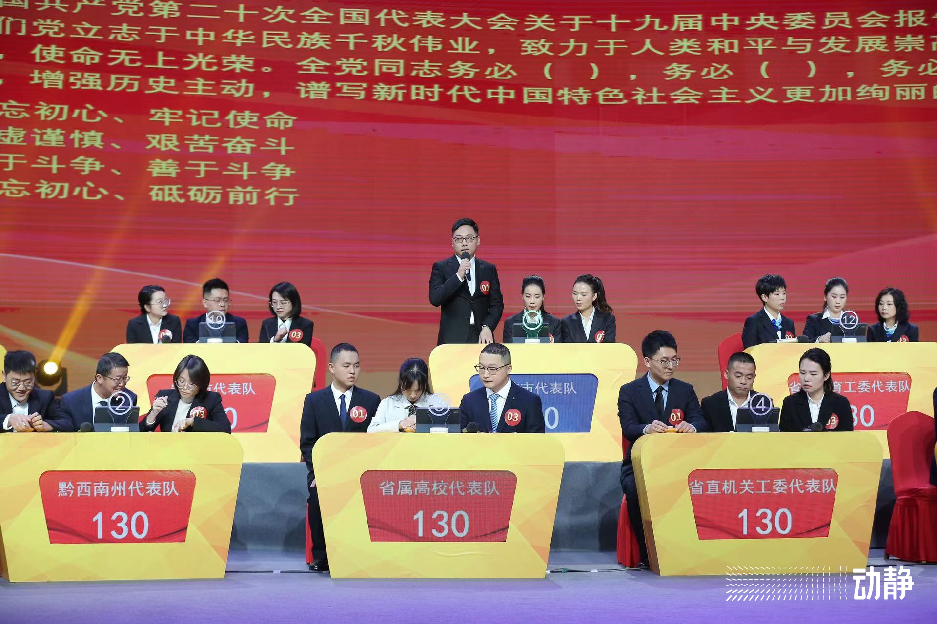 总决赛分为个人必答题、抢答题、风险题以及附加赛4个环节。比赛现场,各队代表选手冷静思考、沉着应对、踊跃抢答,展现了扎实的知识储备和理论学习成果。最终,贵阳市代表队脱颖而出,获一等奖,六盘水市代表队、黔西南州代表队获二等奖,遵义市代表队、黔东南州代表队、黔南州代表队获三等奖。此外,现场为参赛单位颁发了组织奖,为线上答题活动优秀代表颁发了证书。