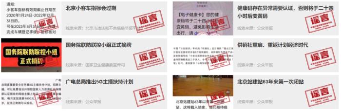 网络辟谣标签工作启动以来,举报中心加强受理网民举报及网站平台提供的谣言线索。针对“国务院联防联控小组正式摘牌”“飞机喷洒打药全城消杀”“疫情期间每天可领取补贴”“国家要求快递业1月8日停业”等网络谣言,会同人社部、国家卫健委、国家市监总局等部门及地方网信举报机构进行权威查证,依托中国互联网联合辟谣平台“网络辟谣标签工作专区”及时发布辟谣标签予以集中曝光。