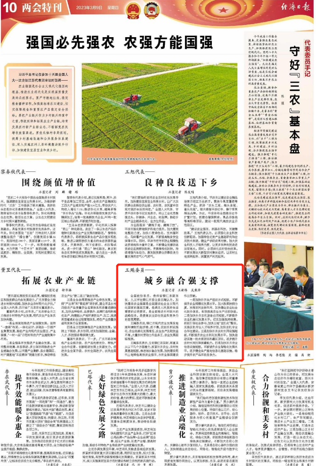 王飚委员表示,立足铜仁市实际,将重点从以下几个方面着力,抓紧补齐农业、农村发展基础短板,推进城乡融合发展,加快建设现代山地特色高效农业强市,为农业强国建设作出贡献。