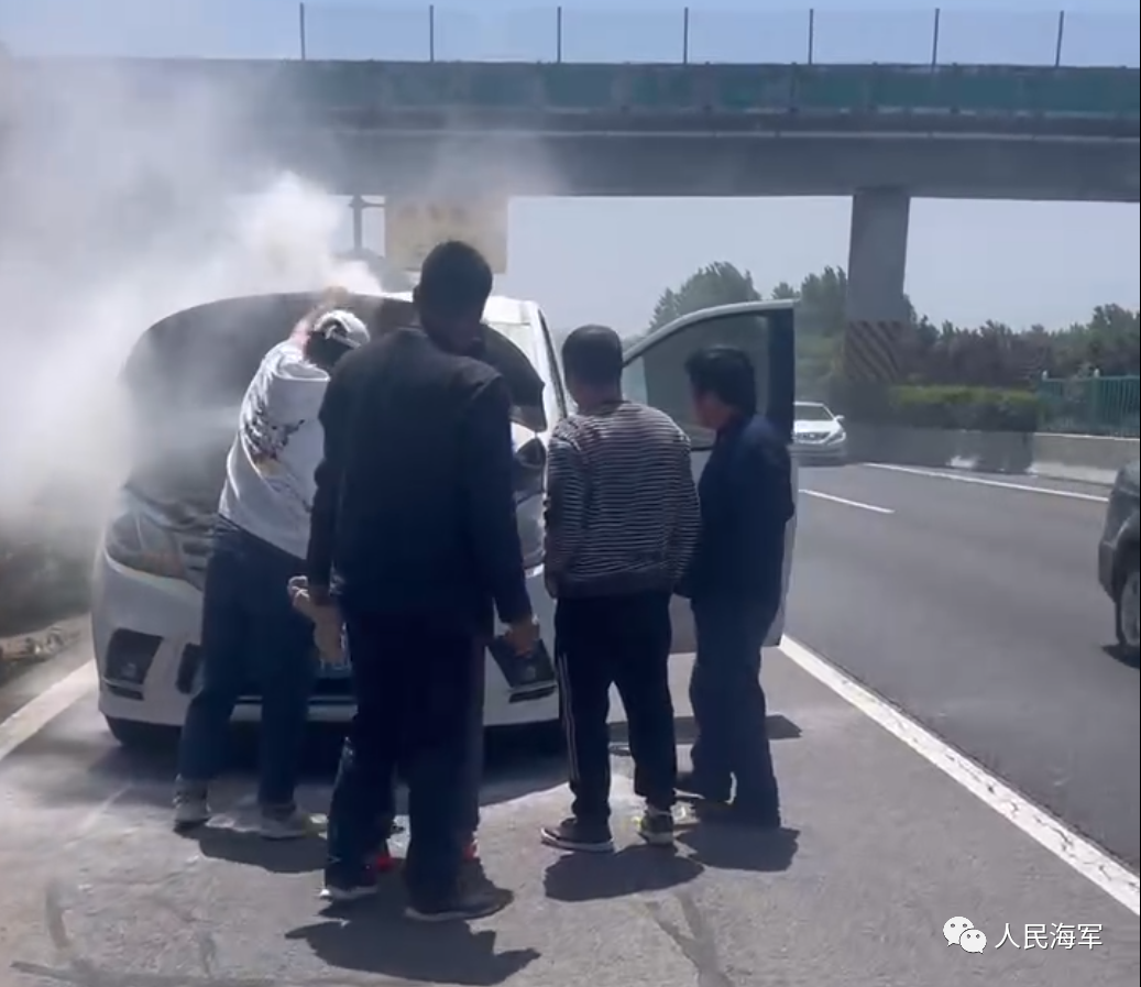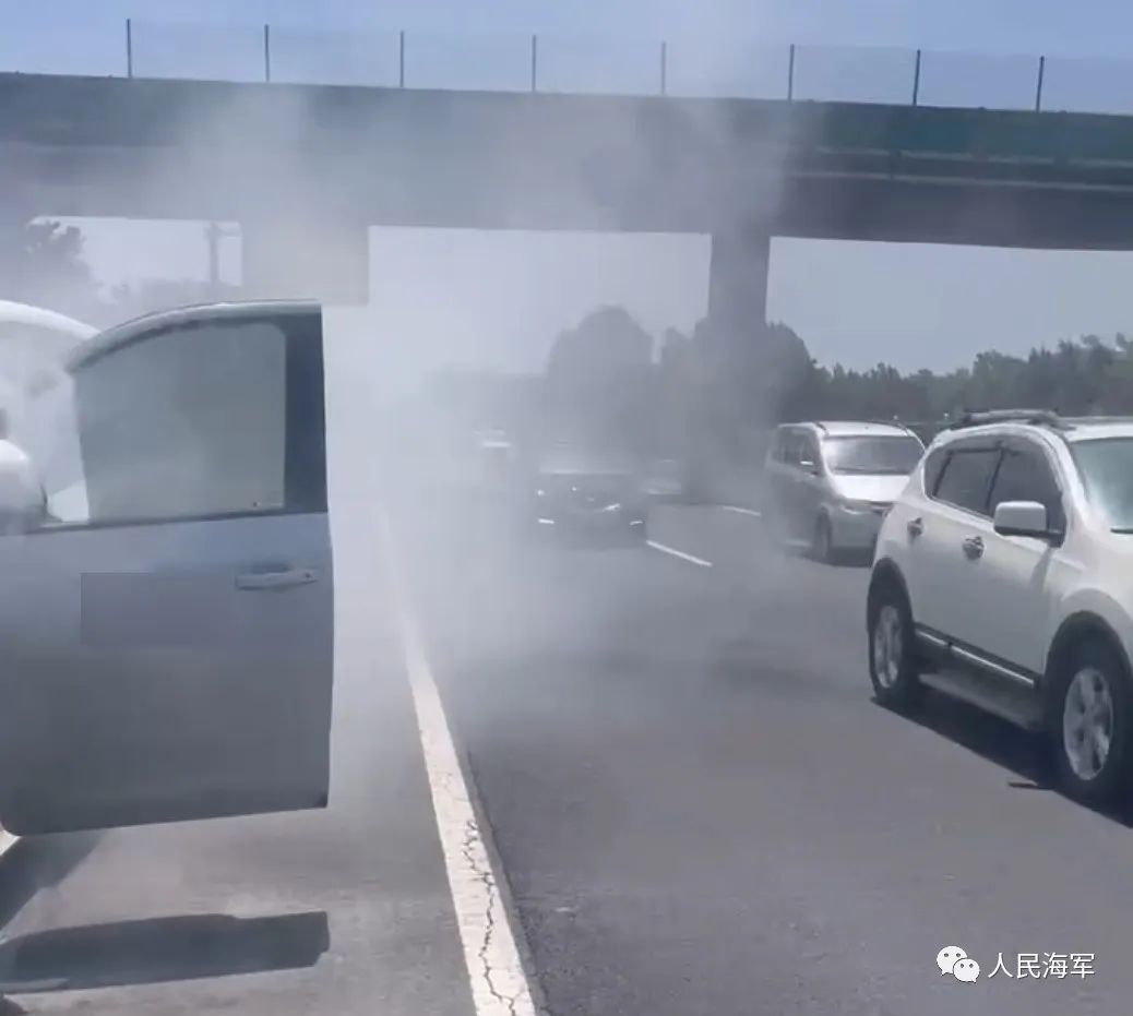 车辆即将行驶到郑栾高速郑州出口处时,坐在副驾驶的白俊磊发现前方百米处,有一辆白色轿车正冒出滚滚浓烟。在车辆的左侧,司机正焦急地踱步,打着电话。