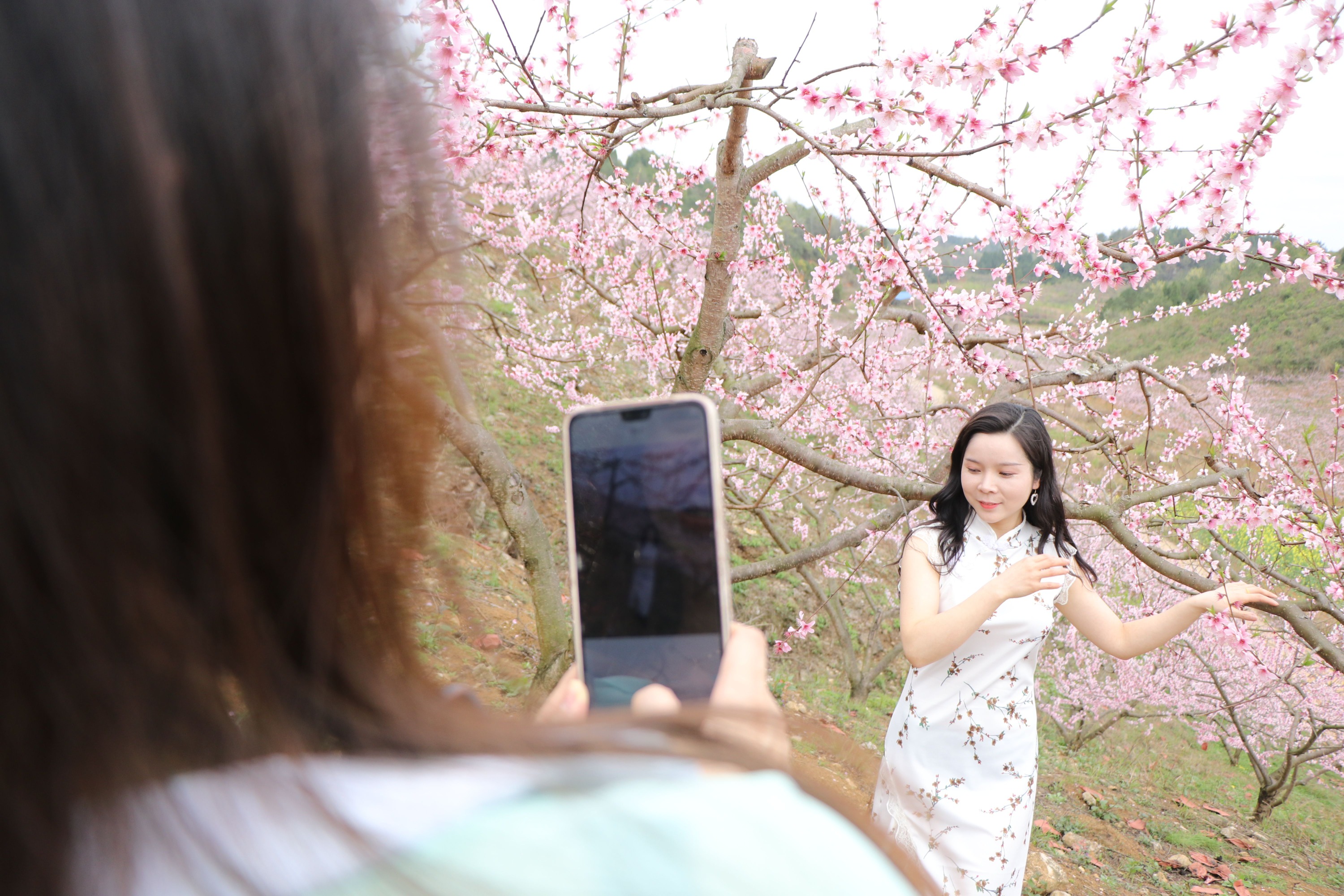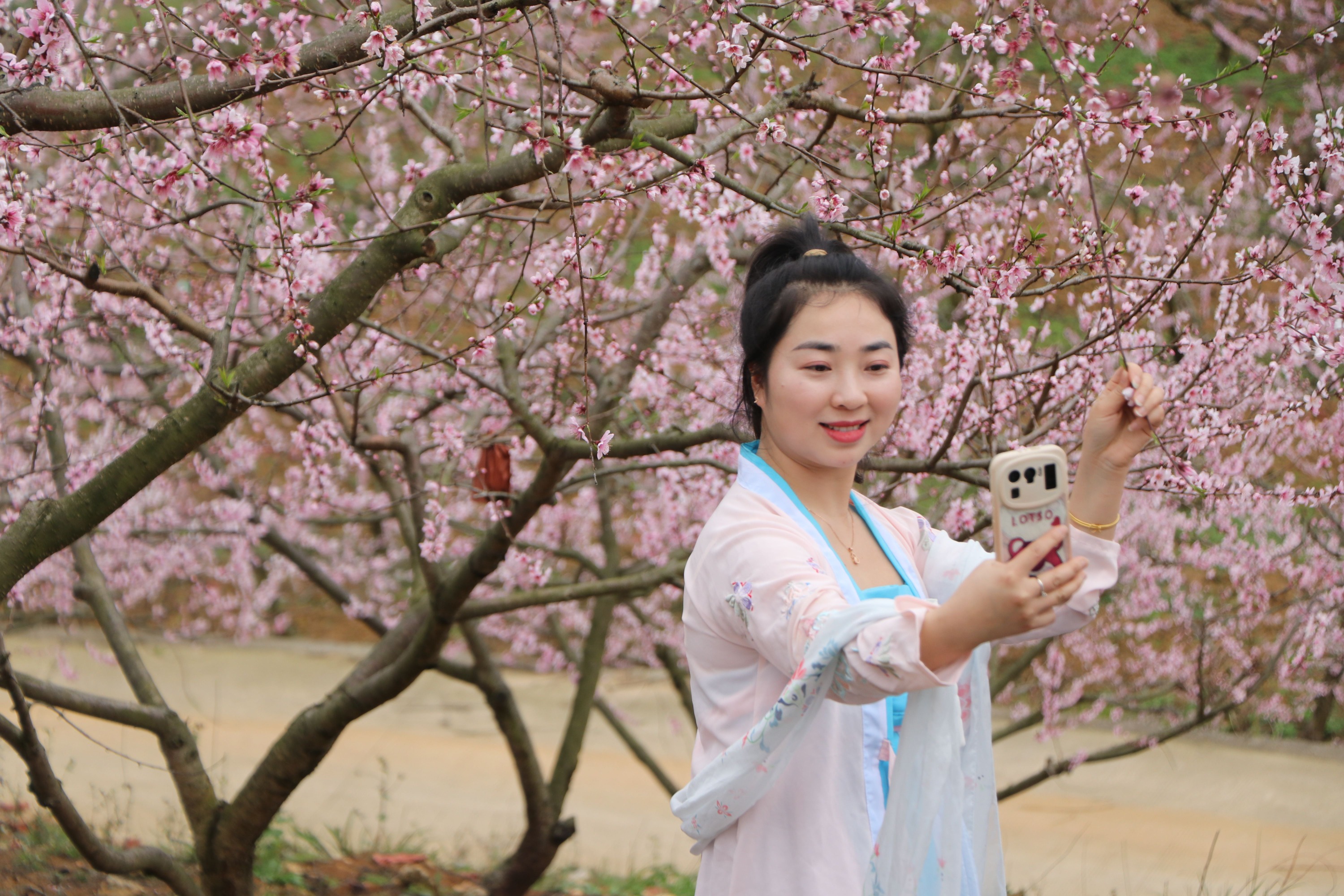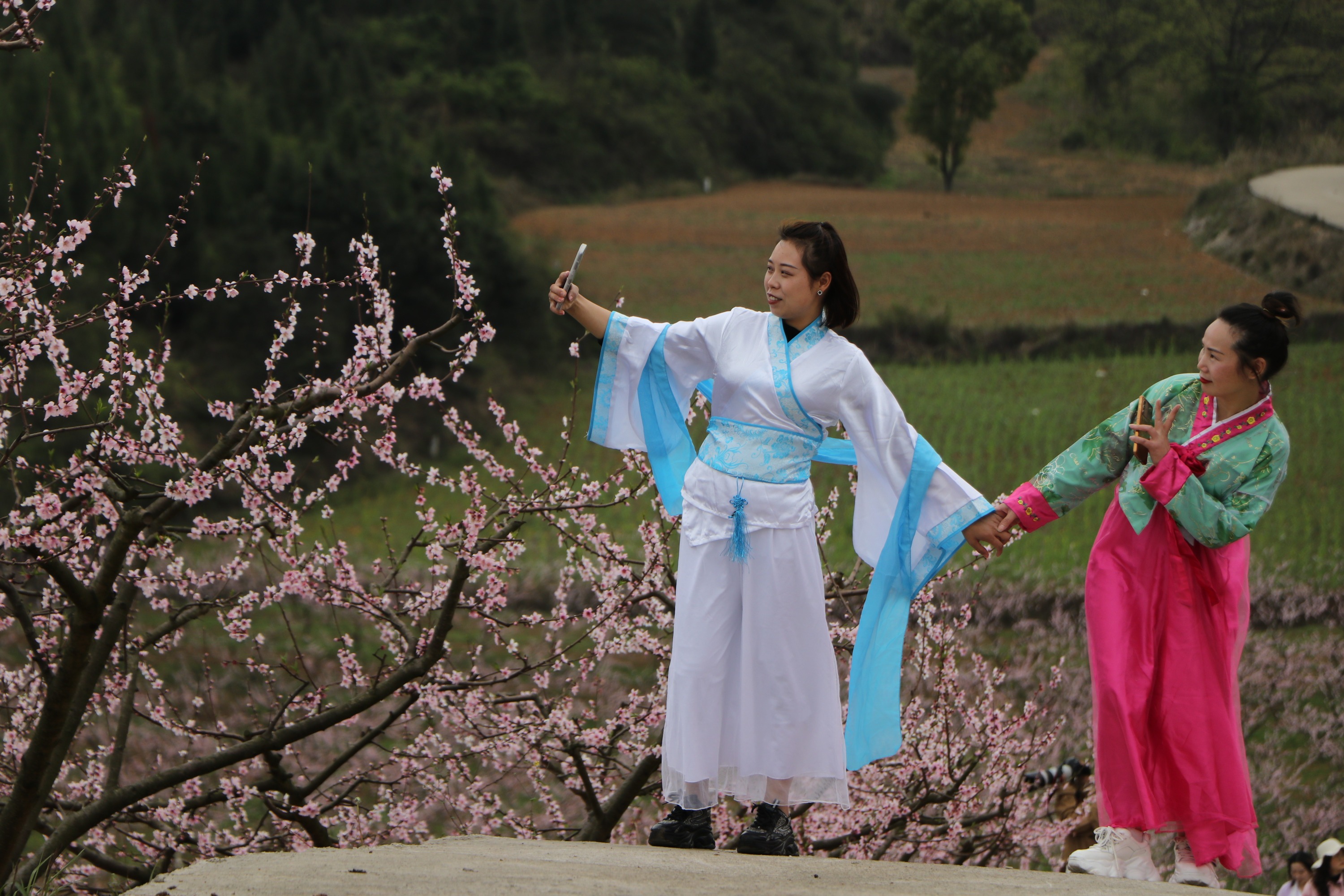 走进玉屏自治县朱家场镇柴冲村,一树树的桃花蔓延在青山绿水间,分外美丽。在桃林间一群身着汉服的游客们穿梭在其中,用手机记录着美景,一旁还有不少的摄影爱好者正在用手中的机器留下这一幕幕动人的景色。