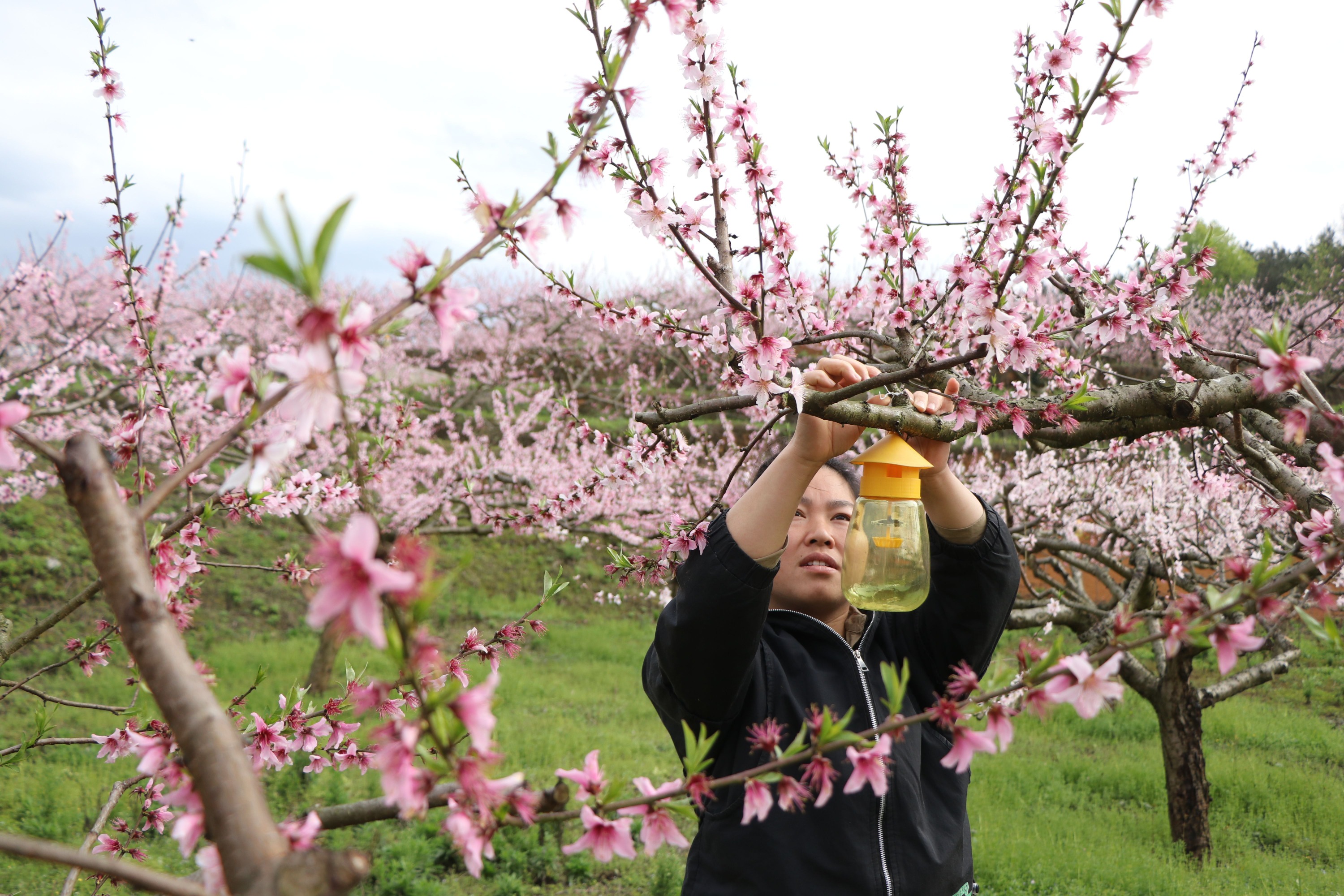 另一边,位于皂角坪街道的瓮阳村同样被桃花包裹着,该村的1800余亩桃花也已经绽放枝头,粉色的浪漫充斥着每一寸土地,为春天增添不少温暖绚丽的色彩。村干部正在桃林里穿梭查看桃花长势,在他们看来,这满树的桃花预示着又是一个丰收年。