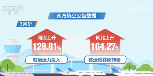 南方航空公告数据显示,3月份公司客运运力投入同比上升128.81%,旅客周转量同比上升164.27%;客座率为74.07%,同比上升9.94%。