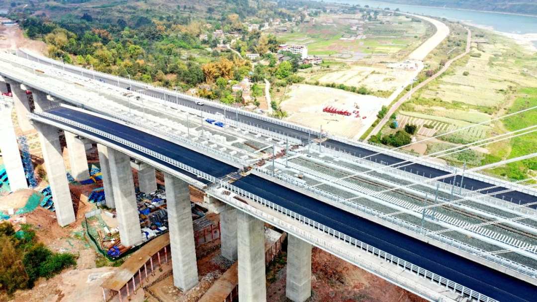 日前,成自宜高铁重点控制性工程——宜宾临港公铁两用长江大桥,公路沥青路面摊铺完成,大桥附属工程进入收尾阶段,为全线按期顺利贯通迈出坚实一步。