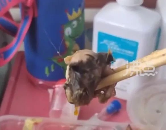 6月27日,根据顶端新闻报道,网友爆料称在重庆市秀山县中医院盒饭中吃出一块疑似老鼠头的异物,目前警察已经把盒饭带走进行调查。