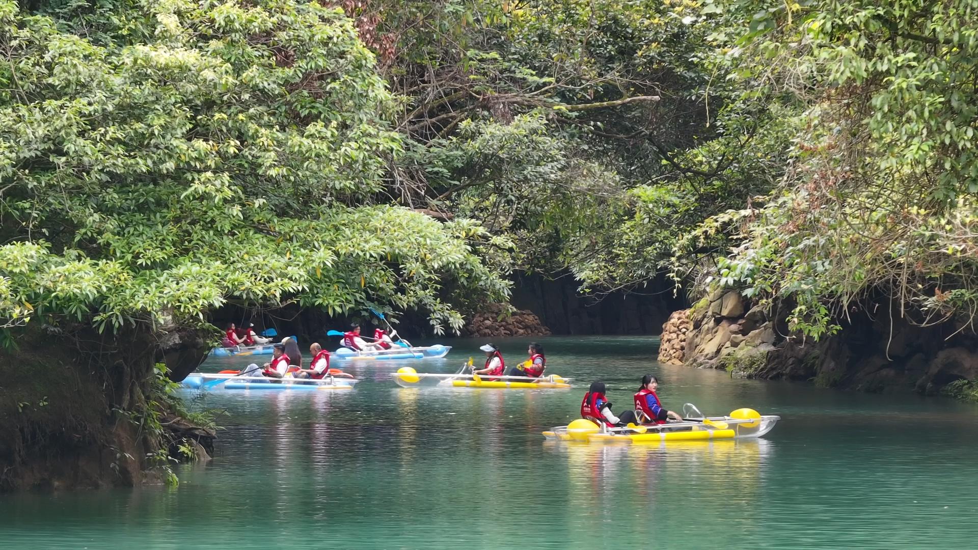 在小七孔景区,林中游船项目最受游客青睐,为了让更多游客更能感受到湖水的碧绿与清凉,景区在原有基础上,增开鸳鸯湖上湖透明船游湖体验项目,增加游客体验感,延长游客浏览时间。