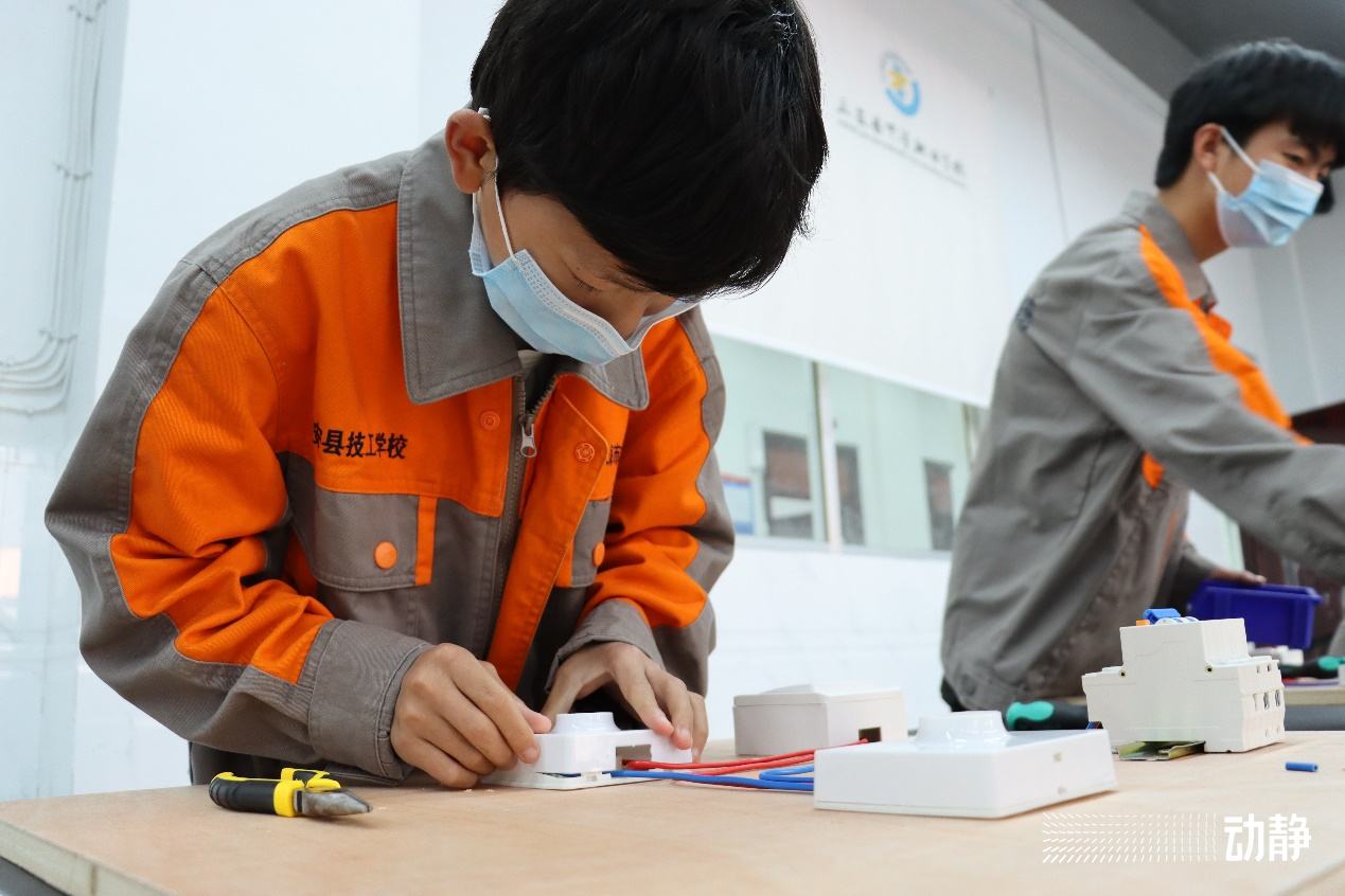 新的学期,走进正安县中等职业学校,2021级电气自动化的学生们,正在老师的指导下,安装电气控制线路。