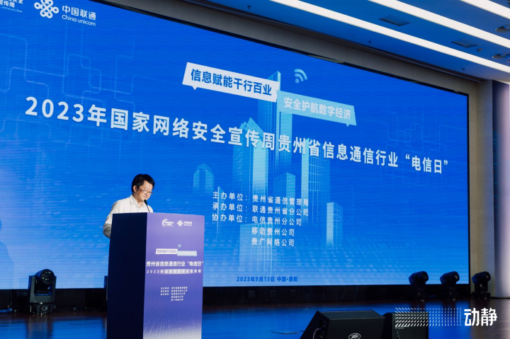 今天(9月13日),由贵州省通信管理局主办,贵州联通承办,贵州电信、贵州移动、贵广网络协办的2023年贵州省网络安全宣传周“电信日”活动在贵阳举行,本次活动主题为“网络安全为人民,网络安全靠人民”。