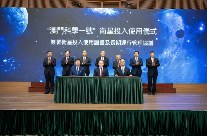 澳门特别行政区行政长官贺一诚、中央人民政府驻澳门特别行政区联络办公室主任郑新聪、国家航天局局长张克俭出席投入使用仪式,共同见证签署“澳门科学一号”卫星投入使用证书、长期运行管理协议。国家航天局总工程师李国平出席投入使用仪式。