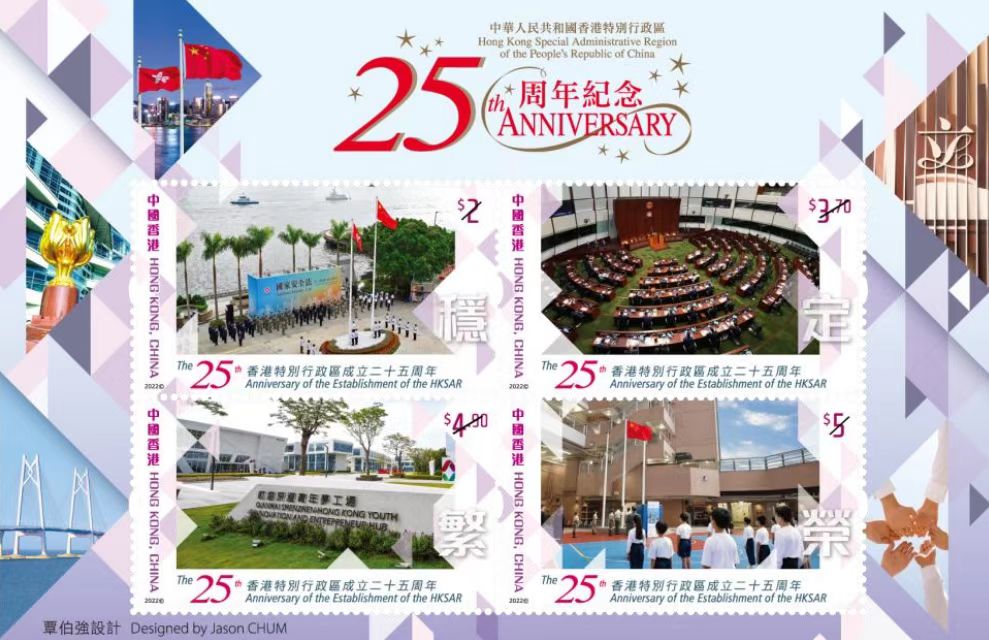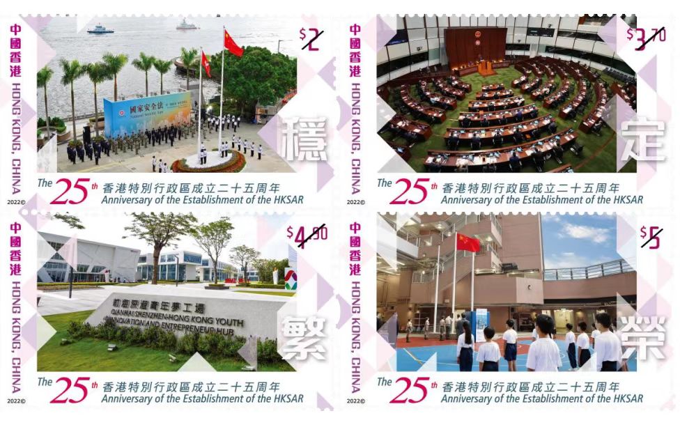 为纪念香港特别行政区成立25周年及中国人民解放军进驻香港25周年,香港邮政特别发行纪念邮票展现香港的繁荣发展。