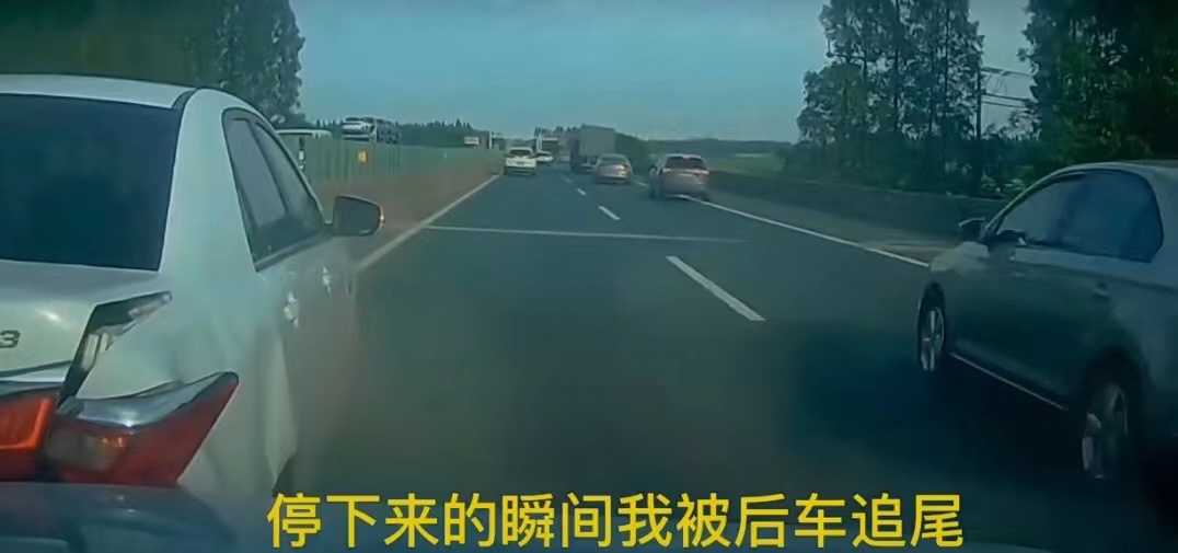近日,沪蓉高速湖北武汉段。杨某驾车在快车道行驶,发现前方停了一辆白色小车,立即紧急制动停车。几乎是停下的瞬间,“砰”的一声被后车追尾,杨某的车被向前顶出,又撞上前方的白色小车。