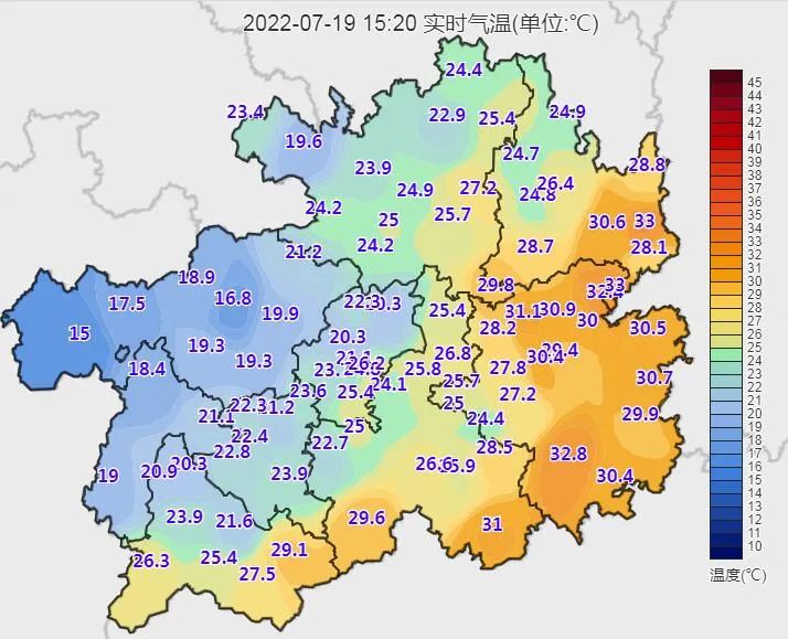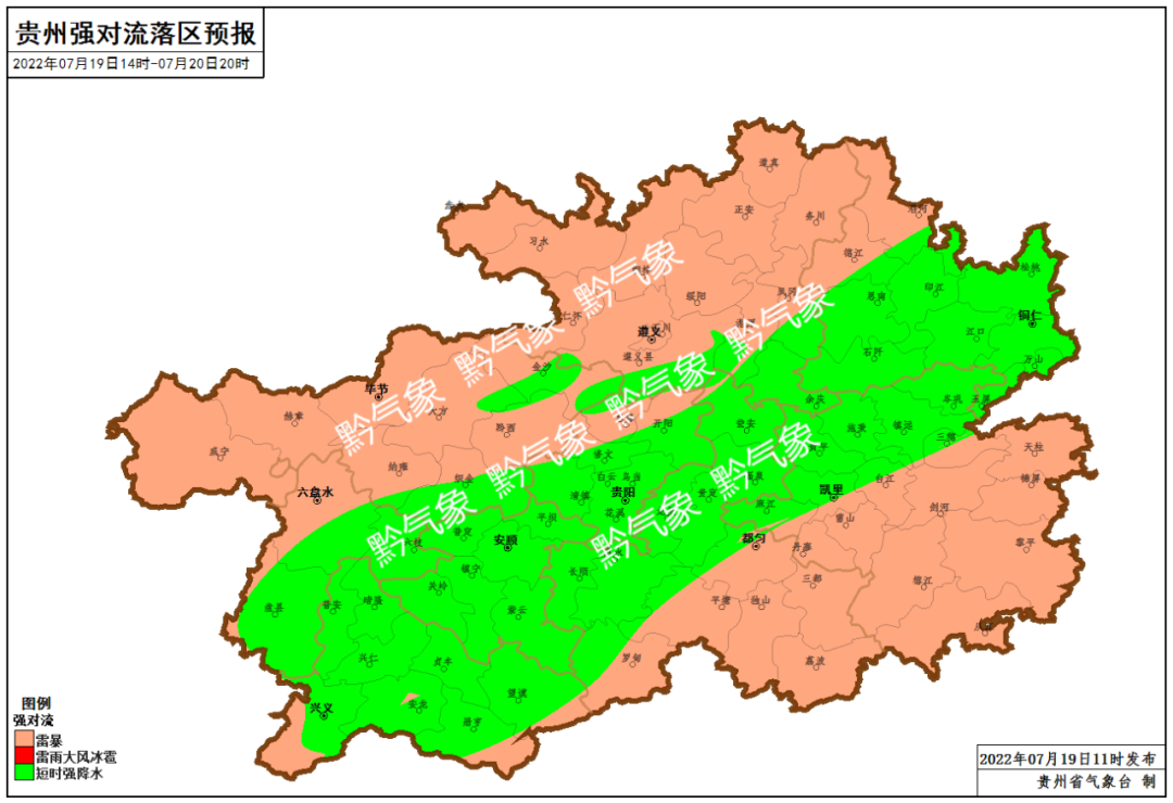 19日14时-20日20时,全省大部有雷电天气,其中,铜仁市大部、遵义南部、六盘水南部、黔南州中北部、黔东南州中北部、安顺市、毕节市南部、黔西南州有短时强降水,局地伴有雷暴大风等强对流。