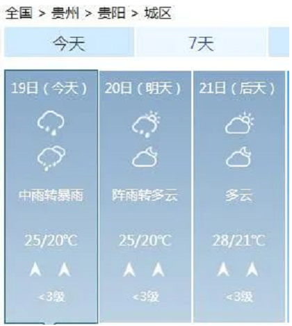 今天夜间到20日白天,阴天间多云有阵雨或雷雨,雨量大到暴雨,个别乡镇有大暴雨;