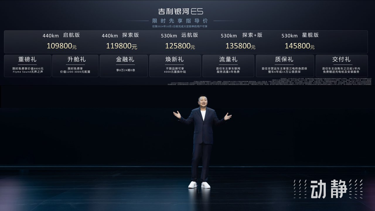 8月3日,吉利银河系列首款纯电动SUV——吉利银河E5,在贵阳举行全球上市发布会。这款新车在位于贵阳市观山湖区的吉利汽车贵阳制造基地量产,共推出8种颜色、5个版型,现场发布的限时售价为10.98万元到14.58万元。