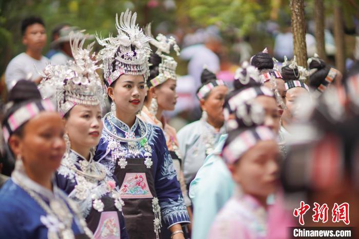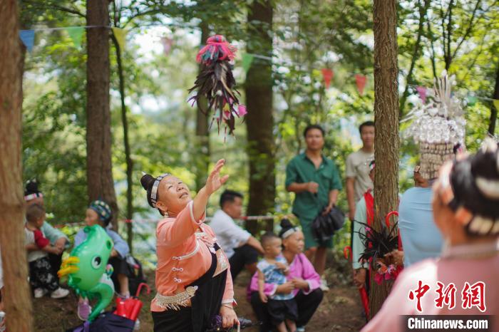 近日,贵州省黔东南苗族侗族自治州丹寨县龙泉镇高寨村举办一年一度的“爬坡节”,吸引了周边村寨的水族同胞和苗族同胞前来参与,大家身着传统盛装相聚在山顶,跳起欢快的传统芦笙舞,欢度节日到来。