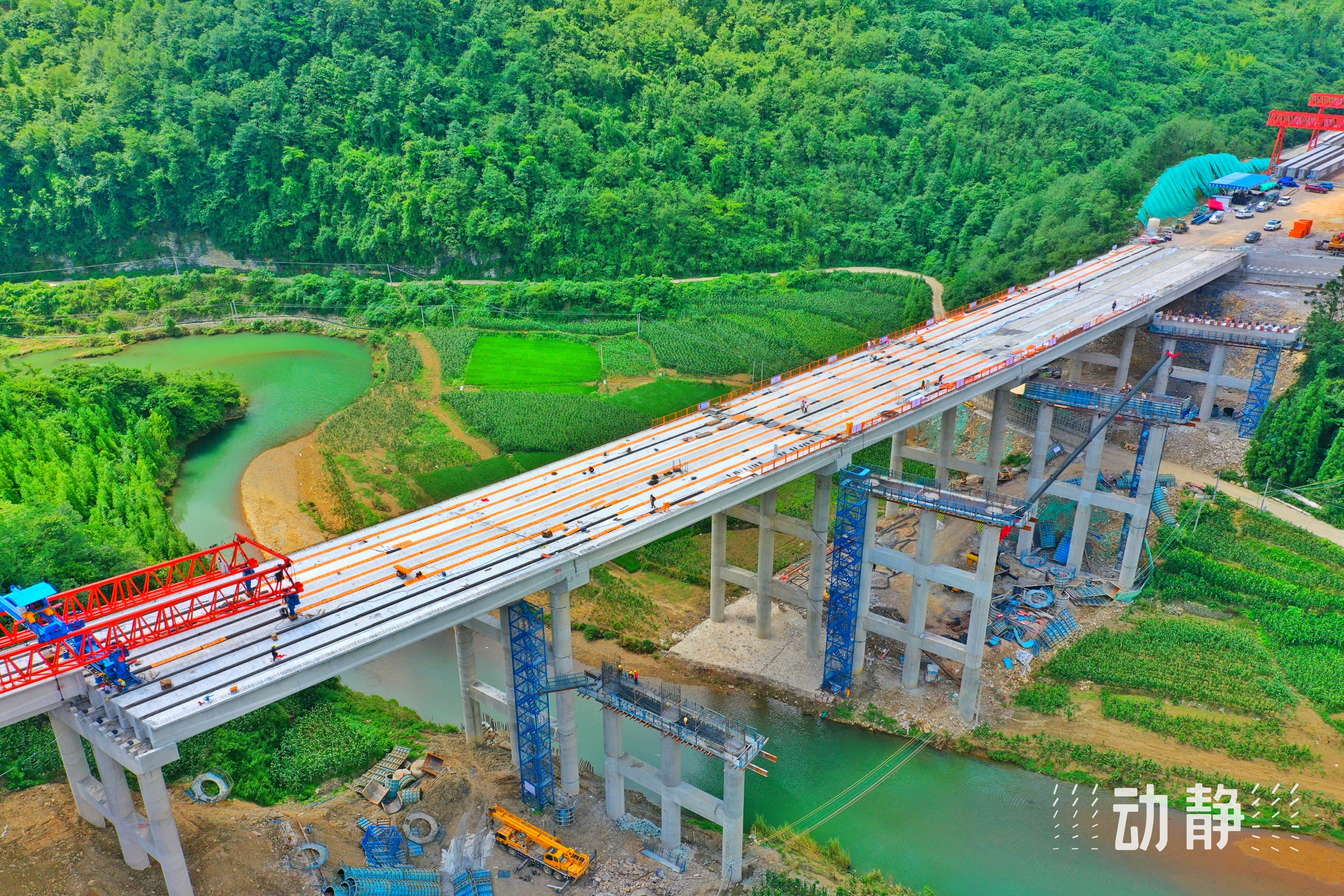 近日,随着最后一片长40米、重125吨的预制T梁稳稳坐落在垫石上,沪昆高速贵阳至安顺段扩容项目10标麦翁河大桥左幅架梁施工顺利完成。