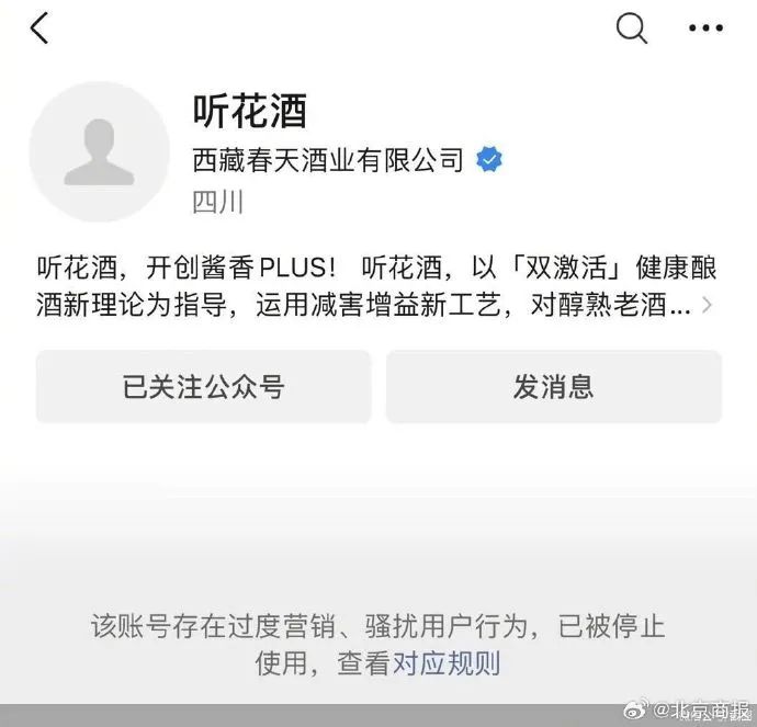 曝光后,听花酒微信公众号账号已被封。