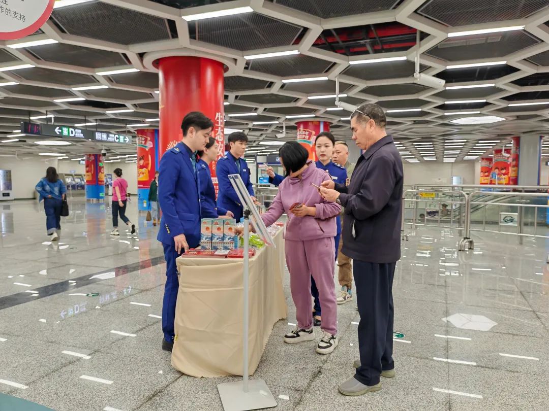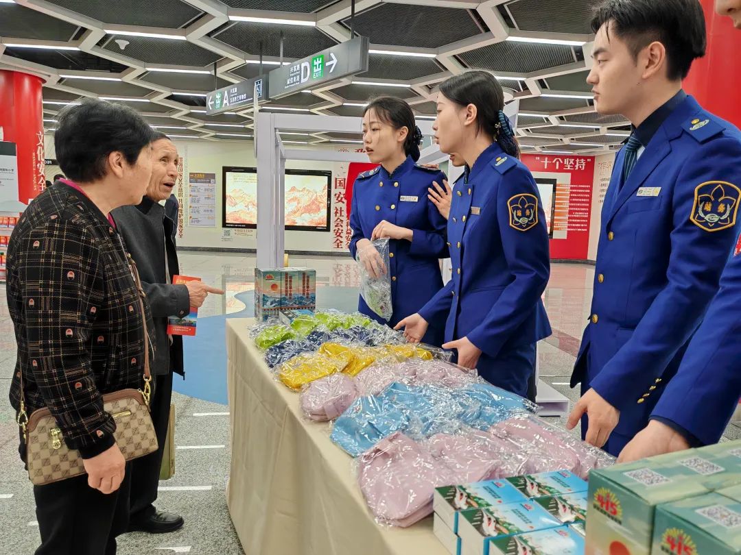 在主题站厅内,不少市民纷纷驻足,了解、学习国家安全方面的法律知识,并在打卡点拍照留念。