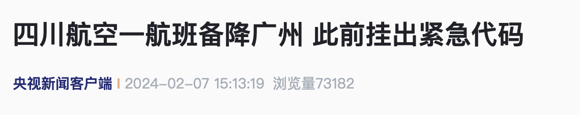 此前报道:四川航空一航班备降广州,此前挂出紧急代码