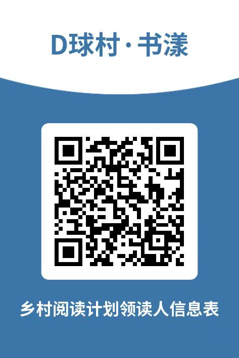 扫描关注上方公众号二维码,书漾携手D球村共燃星星之火,联结阅读之力。愿成为乡村少年阅读的“先行”探路者,播撒希望种子,期待您的加入!