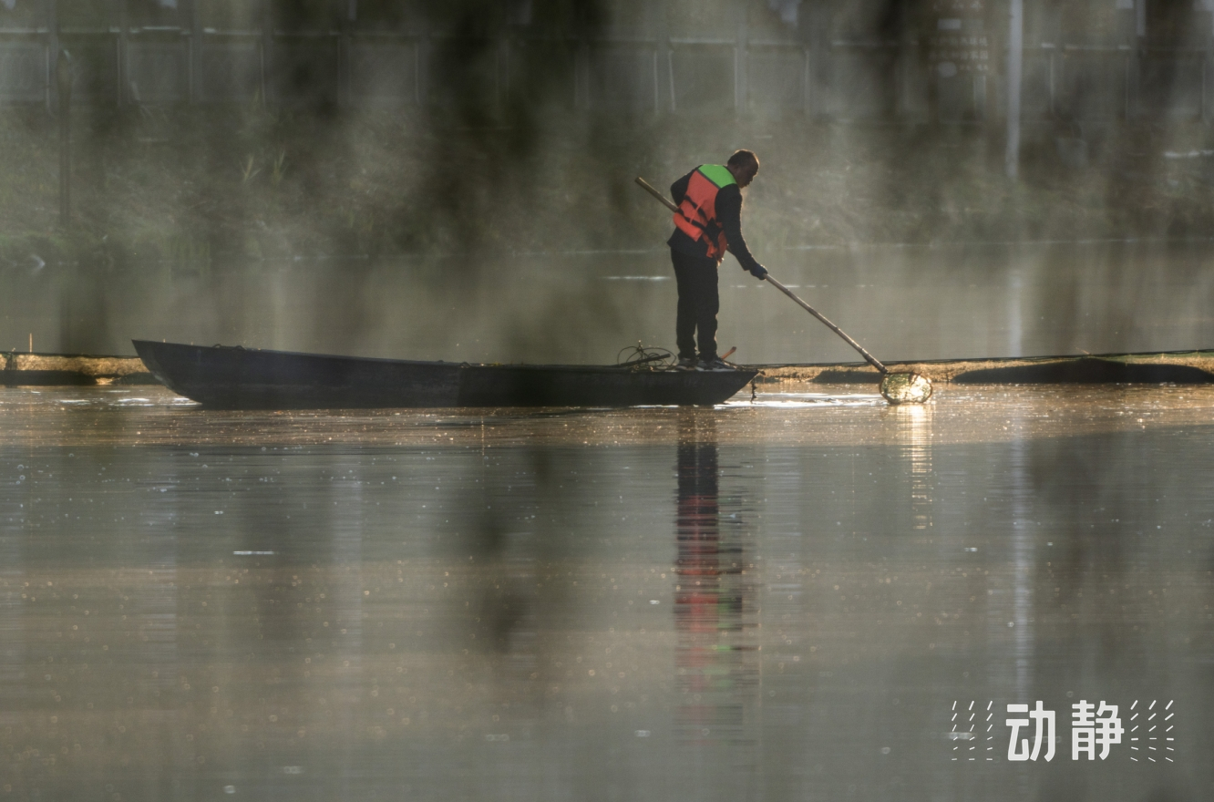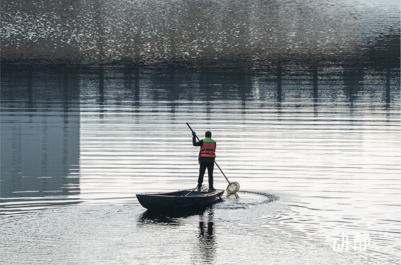 新年伊始,在毕节市倒天河上,环卫工人正在打捞清理河面漂浮物和垃圾,切实维护好河道水环境卫生。