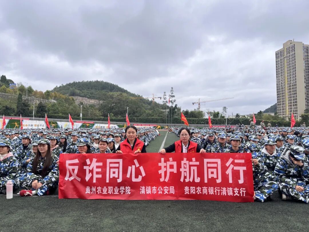 为切实提升学生群体的金融安全意识,筑牢校园反诈防护网,日前,贵阳农商银行清镇支行联合清镇市公安局、贵州农业职业学院共同开展“反诈同心,护航同行”主题宣传活动。