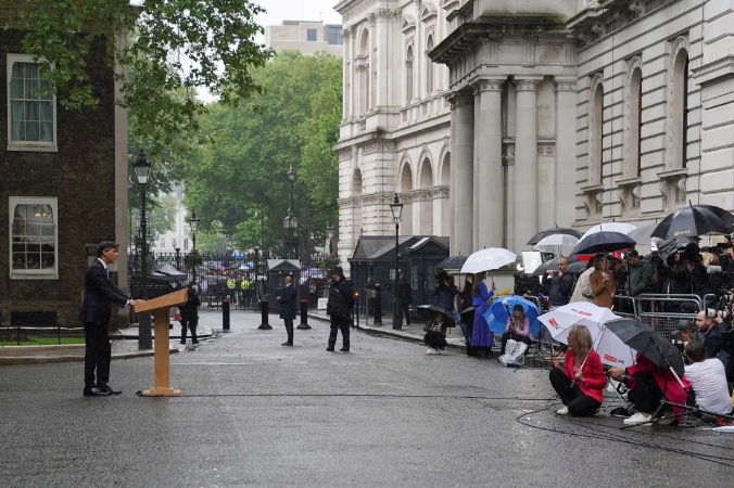 当地时间5月22日,英国首相苏纳克冒着雨,站在唐宁街首相府门前宣布了一个令外界“意外”的决定。
