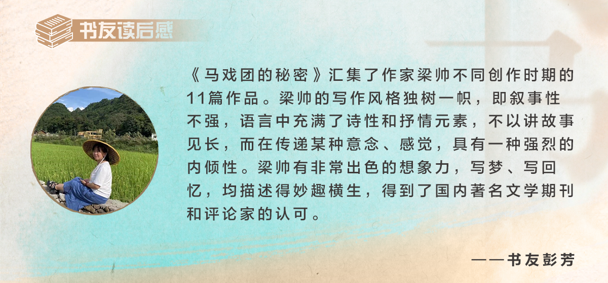 从小说集《马戏团的秘密》里走出来,郑重其事地在头脑中闪回性播放作者梁帅先生的音容笑貌,我感到一种前所未有的清晰性的模糊和模糊性的清晰,我觉得我可能更加熟悉这个人了。
