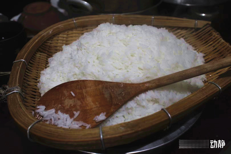 过去在文章中写到过,新米“淘过水,在大锅里煮至夹生,再捞出来,放进甑子蒸。因此有米汤可饮,装在大盆子里,上面漂着粘稠的粥皮,仿佛一段精华,尽数在此。赶紧去舀来,连喝几碗,简直惊艳”。